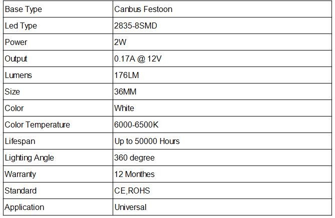 Model: Festoon 8SMD 31 36 38 41mm 2835